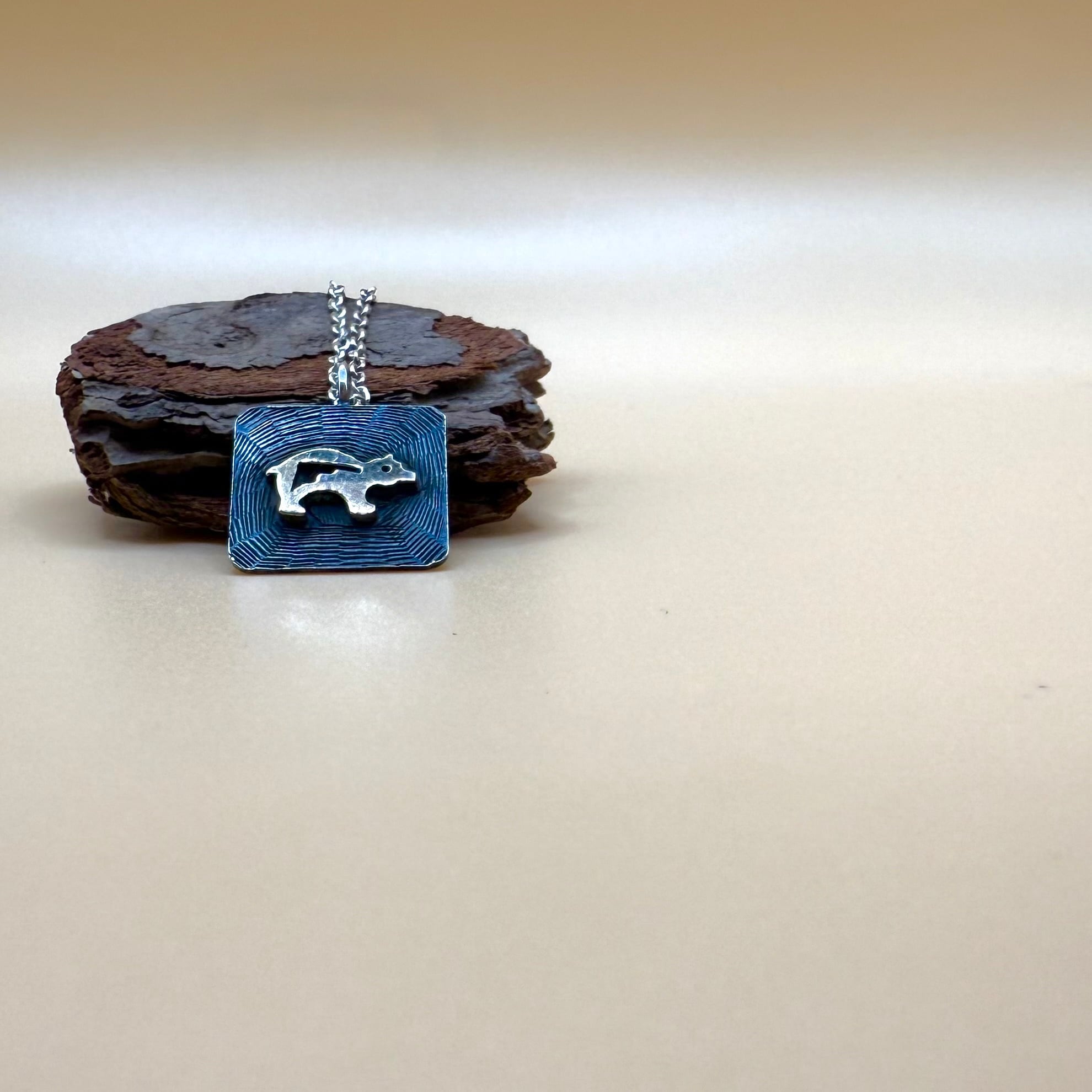 スクエアのプレートに14Kのベア(クマ)をデザインした、