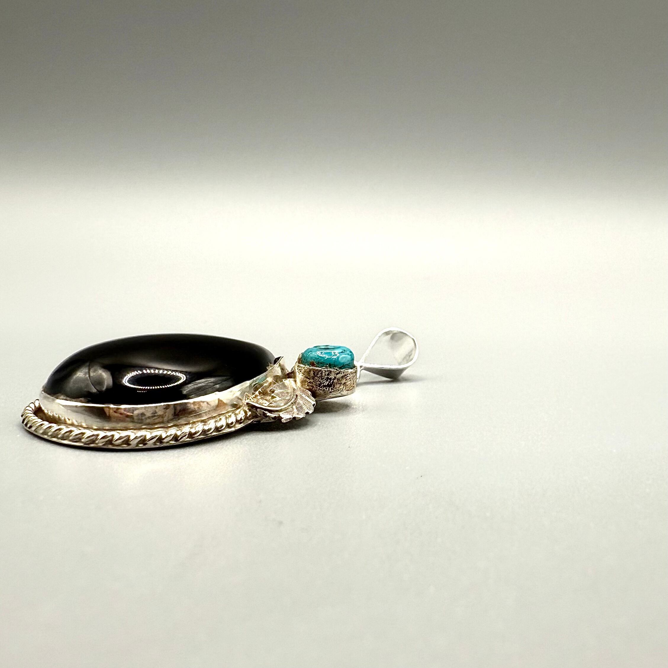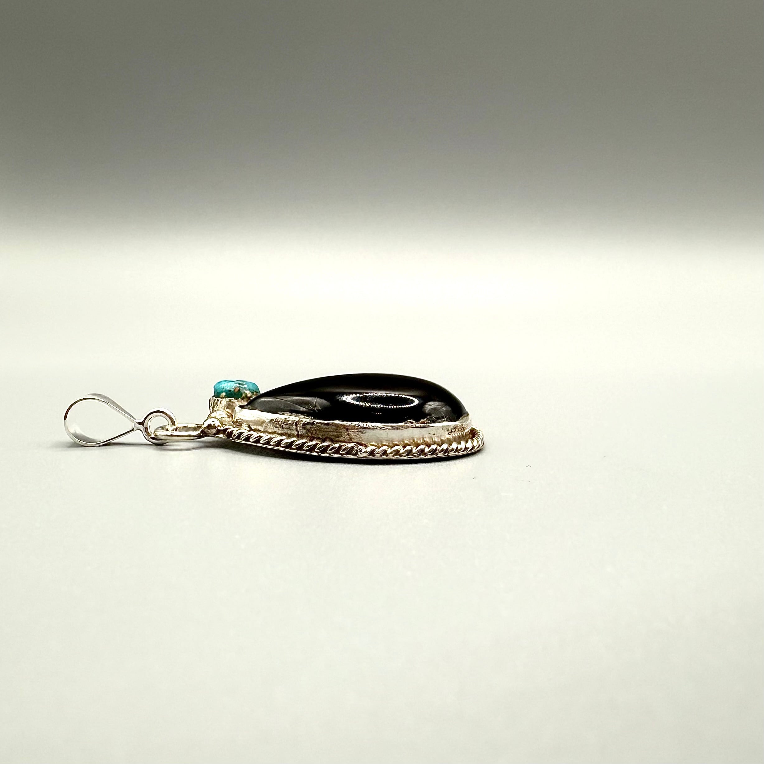 アクセントでついているターコイズがペンダントにコントラストを与えてくれ