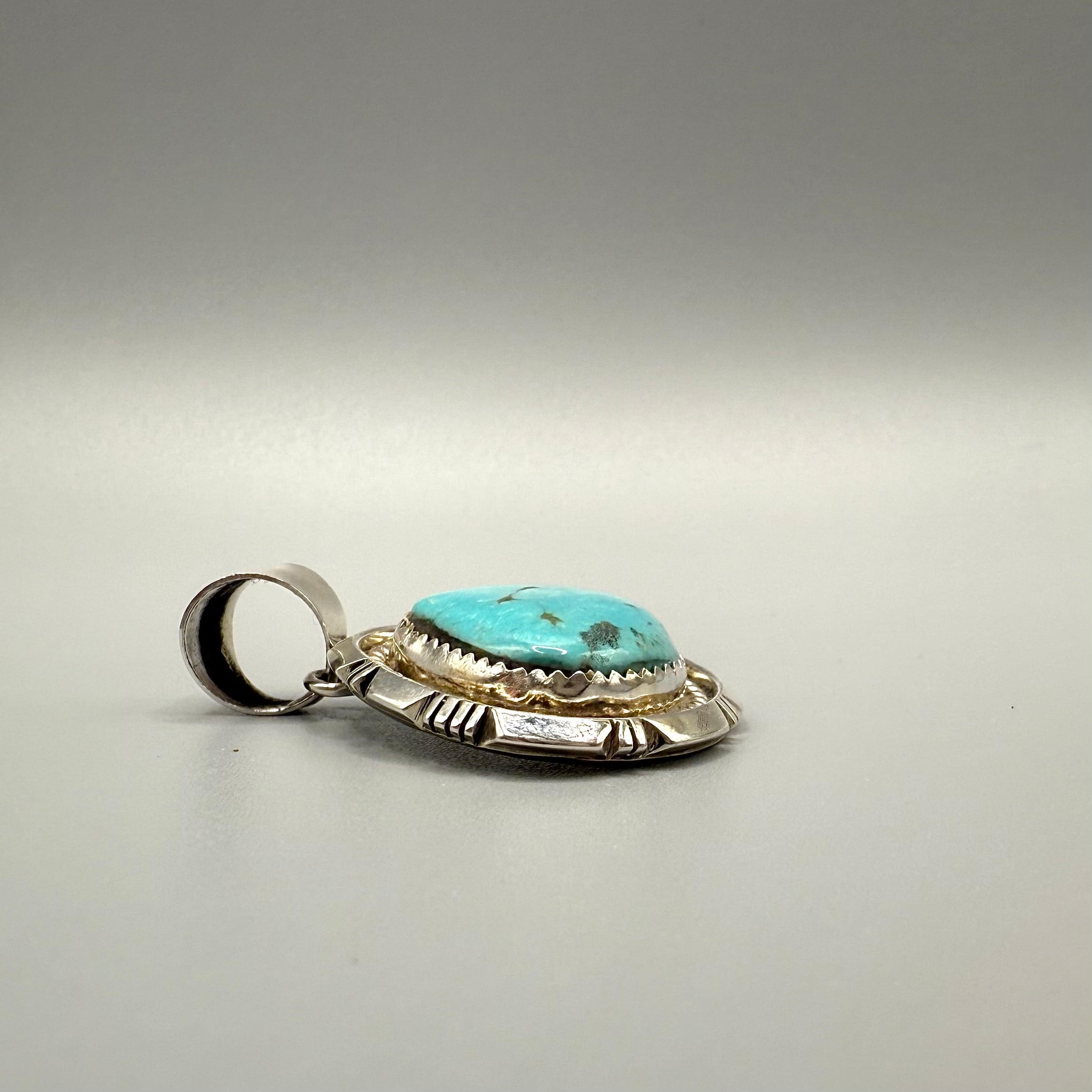 しっかりとしたサイズ感のある綺麗なキングマンターコイズを使用し