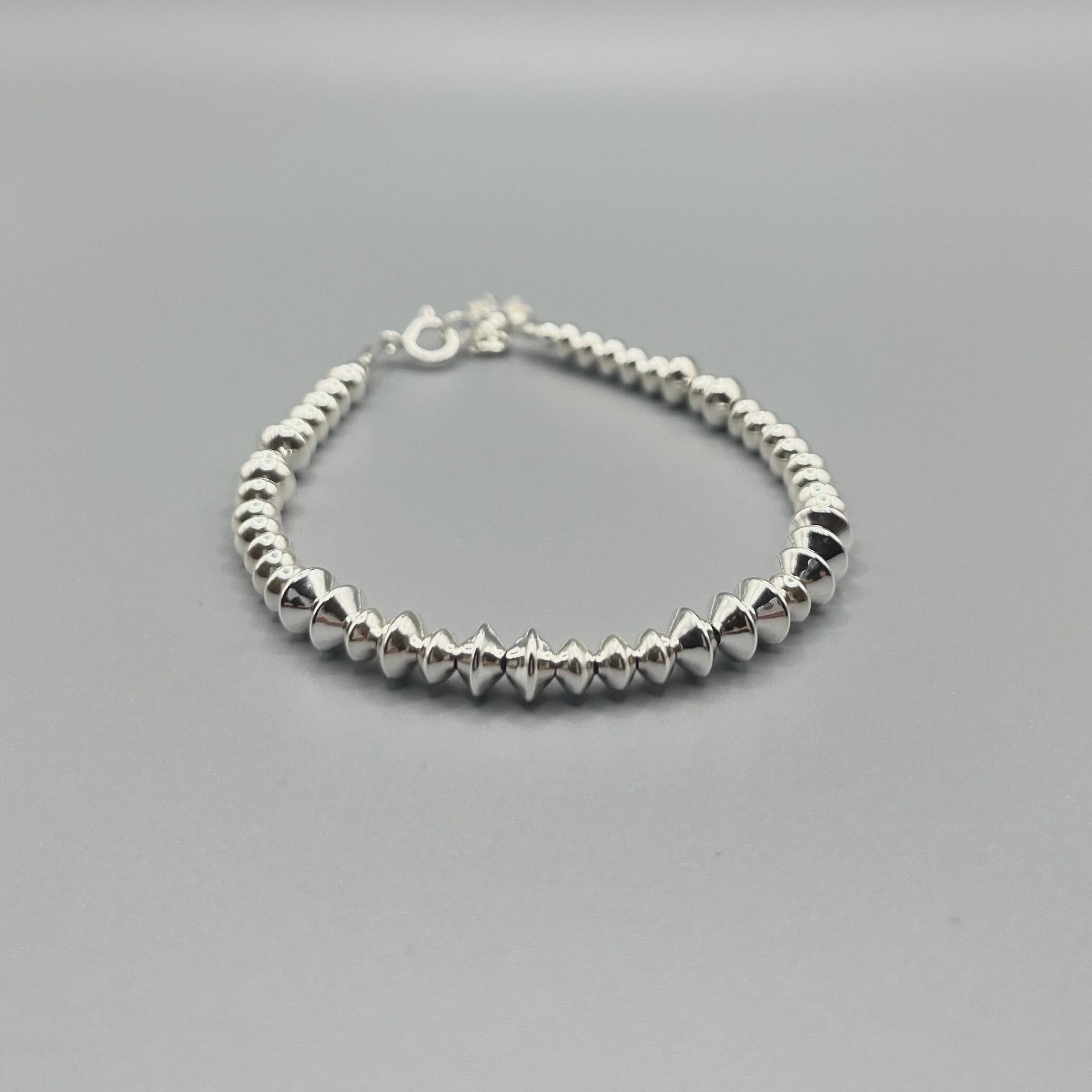 ころんと可愛いそろばんビーズとエッジの効いたそろばんビーズの組み合わせが
