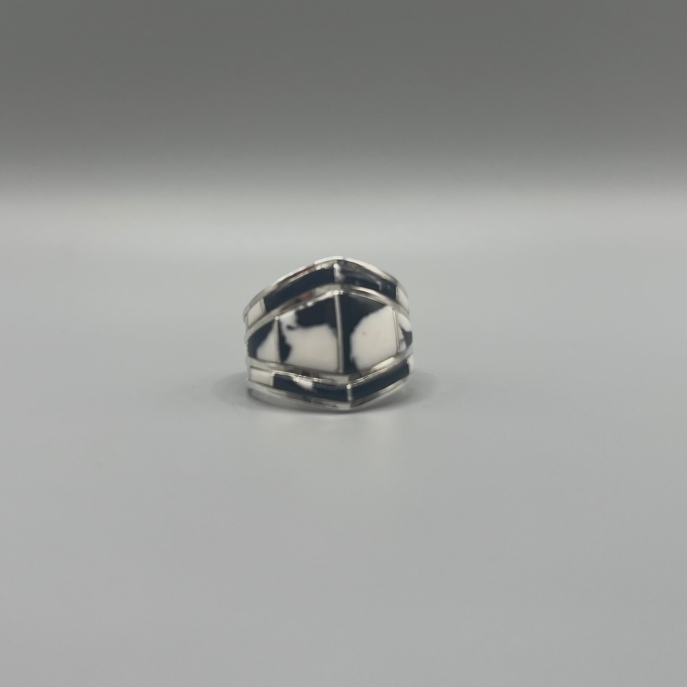 ホワイトとブラックのコントラストがカッコよく、インレイワークでデザイン性も持たせており