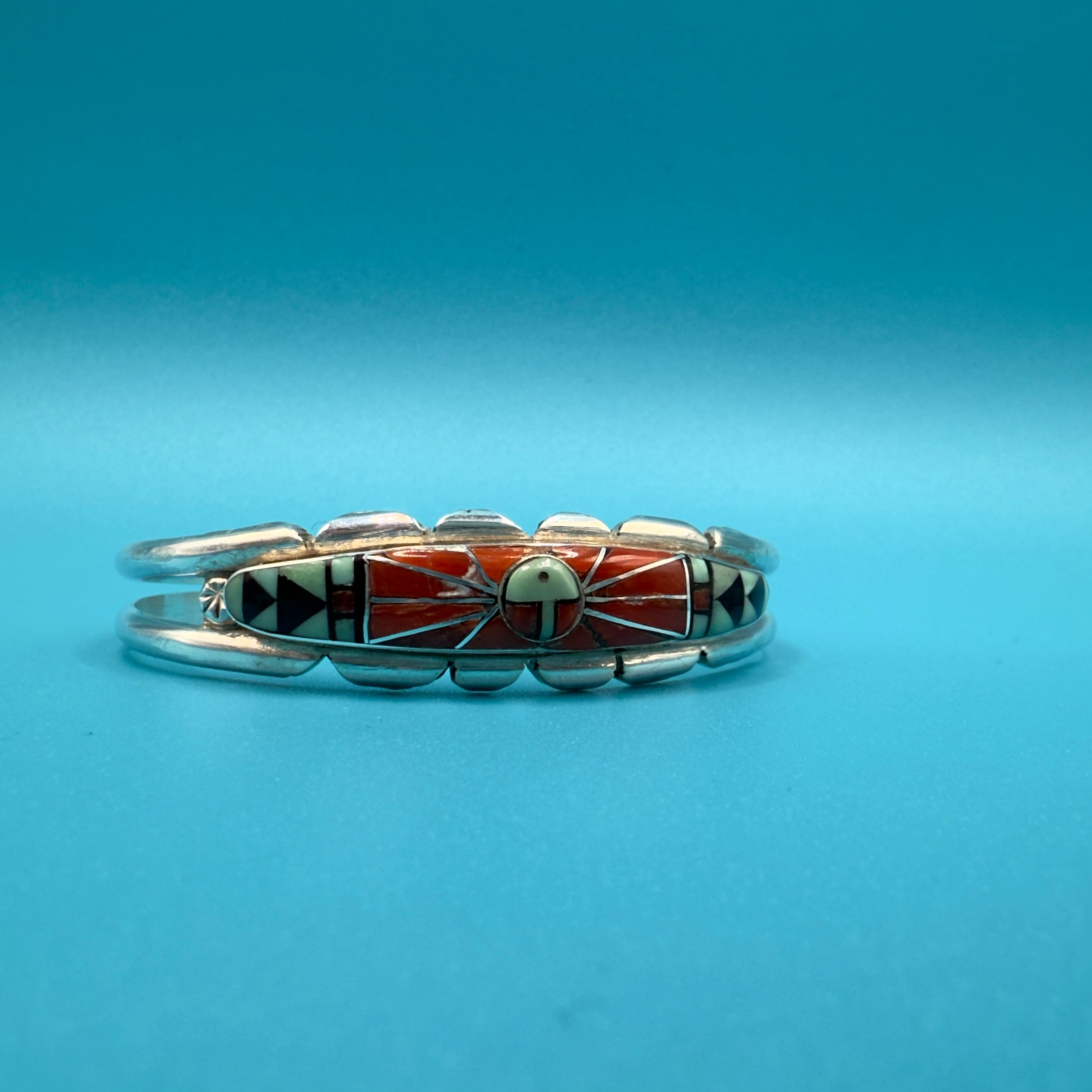 サンフェイスデザインのインレイワークバングル インディアンジュエリー/ネイティブアメリカン/ズニ族/アメカジ/シルバーバングル