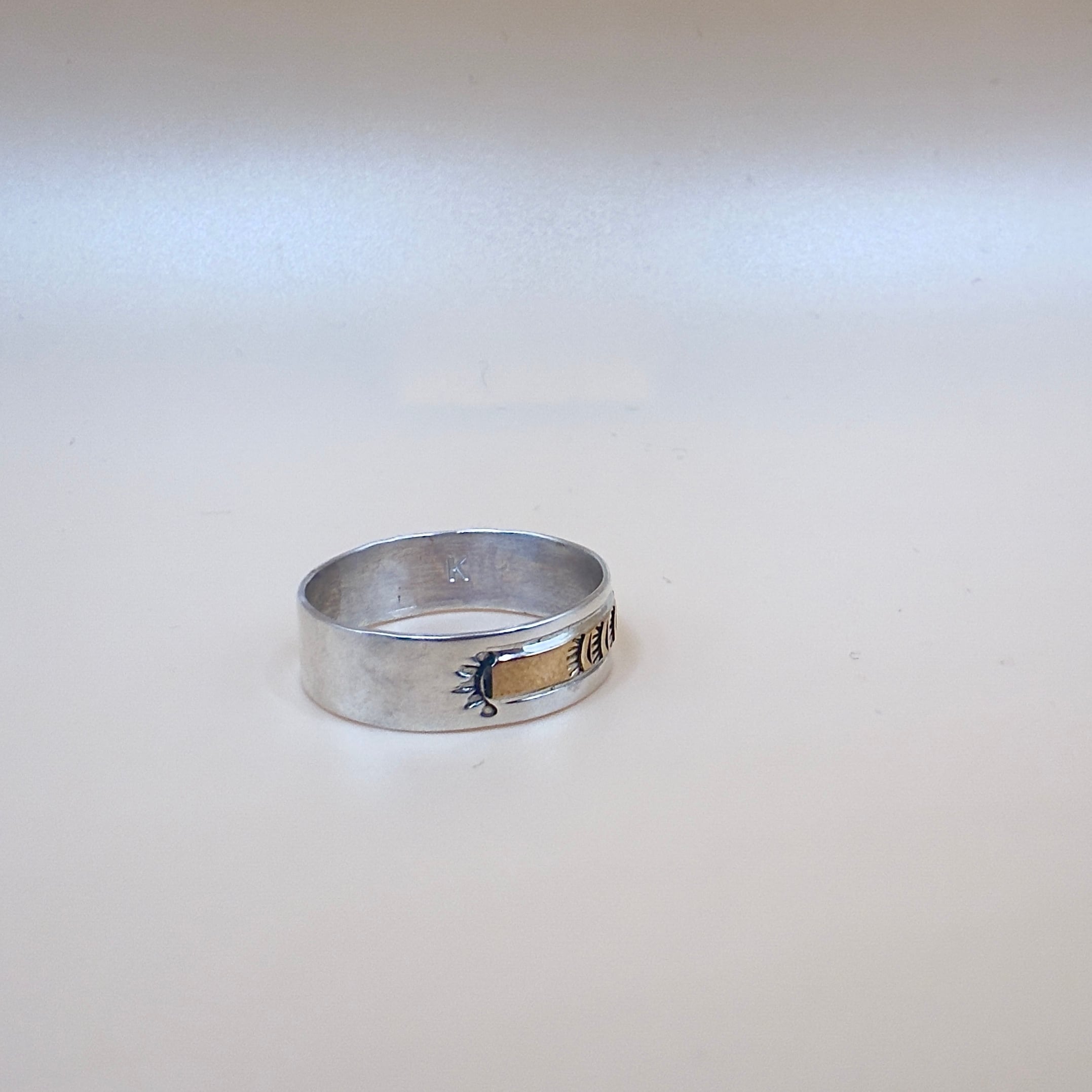 シルバーリングをメインにセンターのスタンプワーク部分を14KGFで仕上げたコントラストが