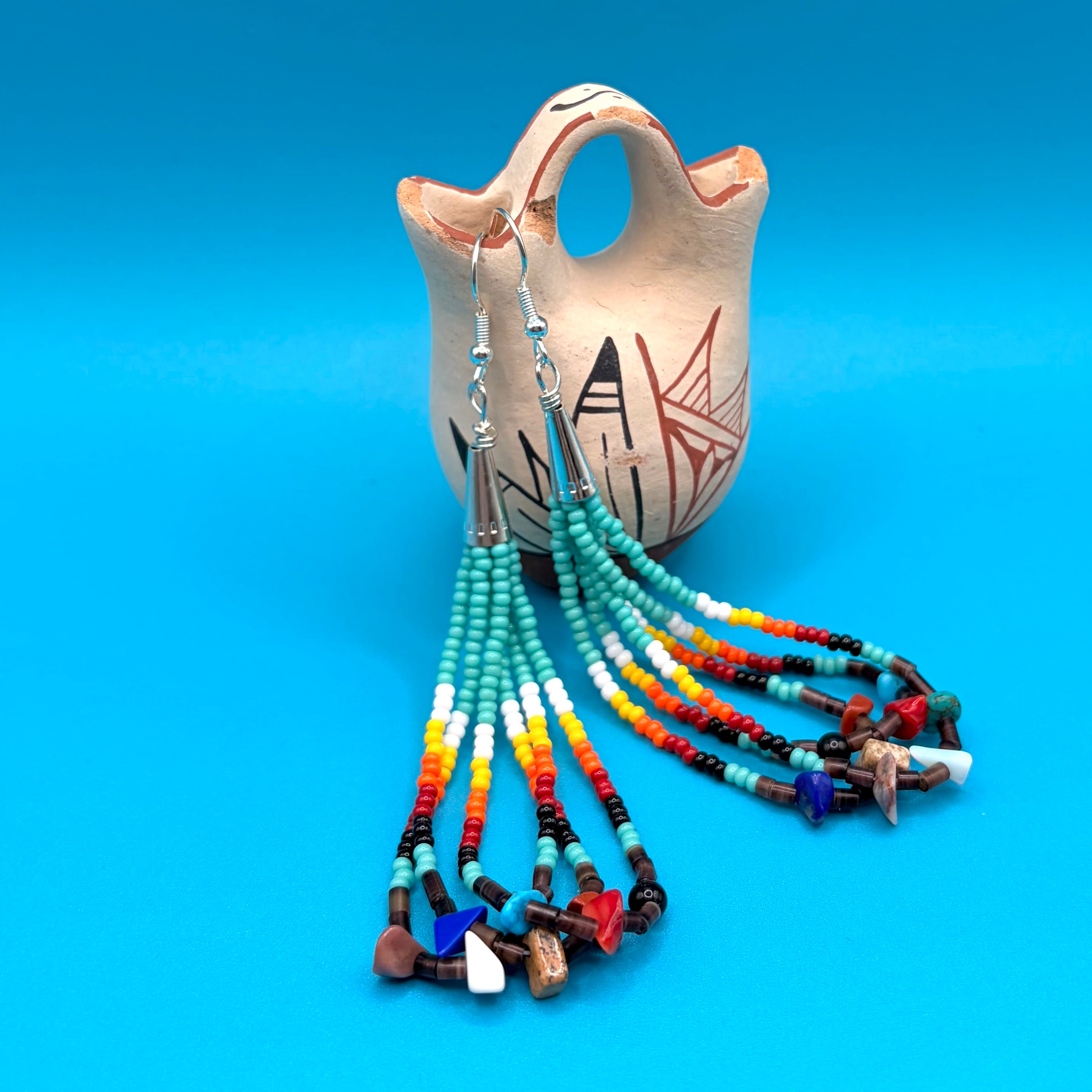ロングビーズピアス インディアンジュエリー/ネイティブアメリカン/ナバホ族/アメカジ/ハワイアン