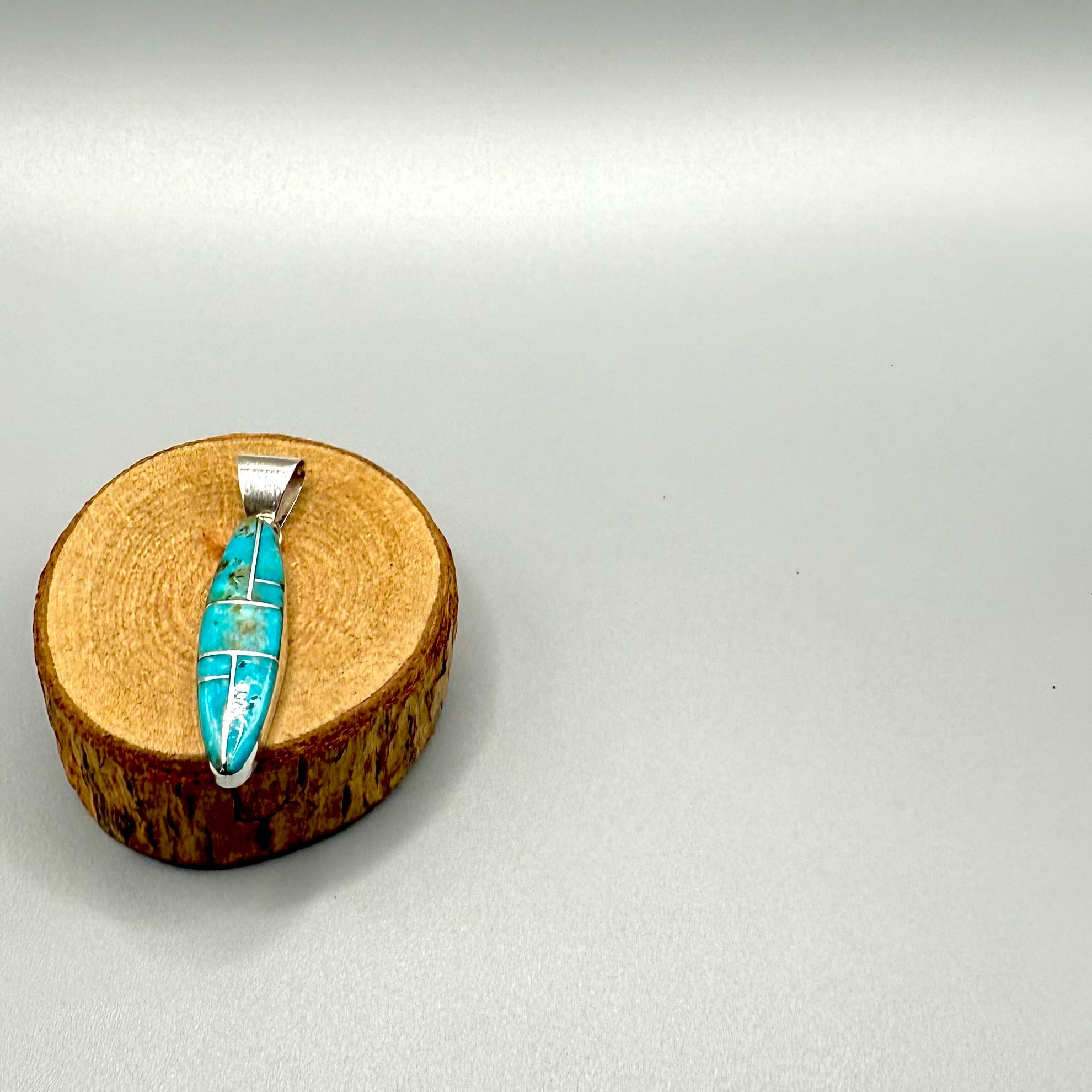 ターコイズをカットしはめ込んだインレイワークデザインが
