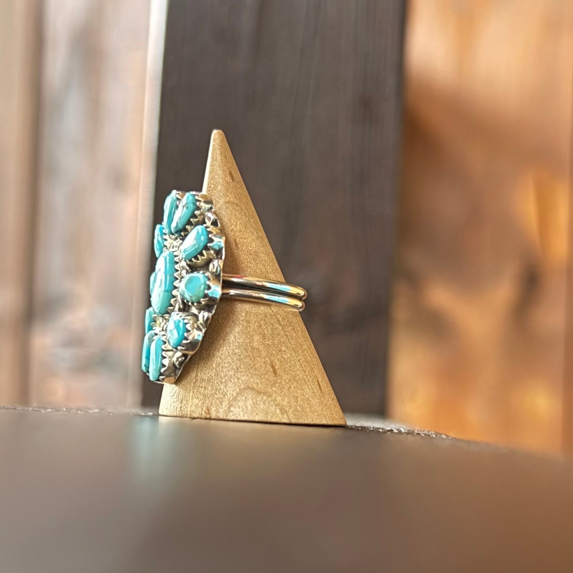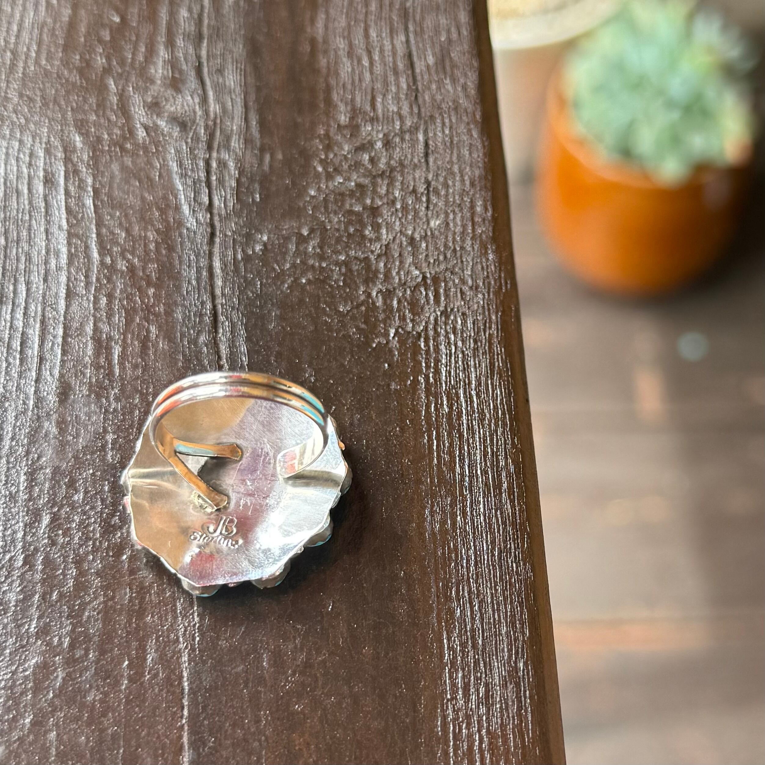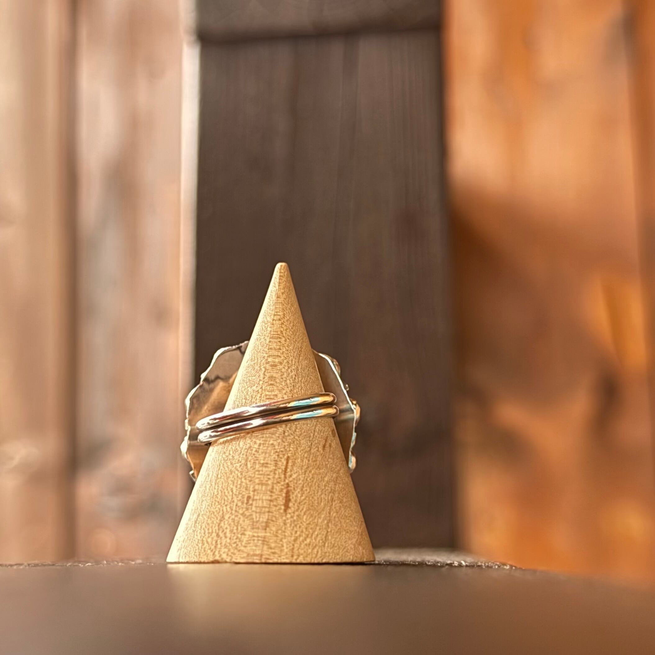 ターコイズをカットし、お花の様な花火の様なデザインにしたカッコよさもある可愛いリングに仕上がっています。