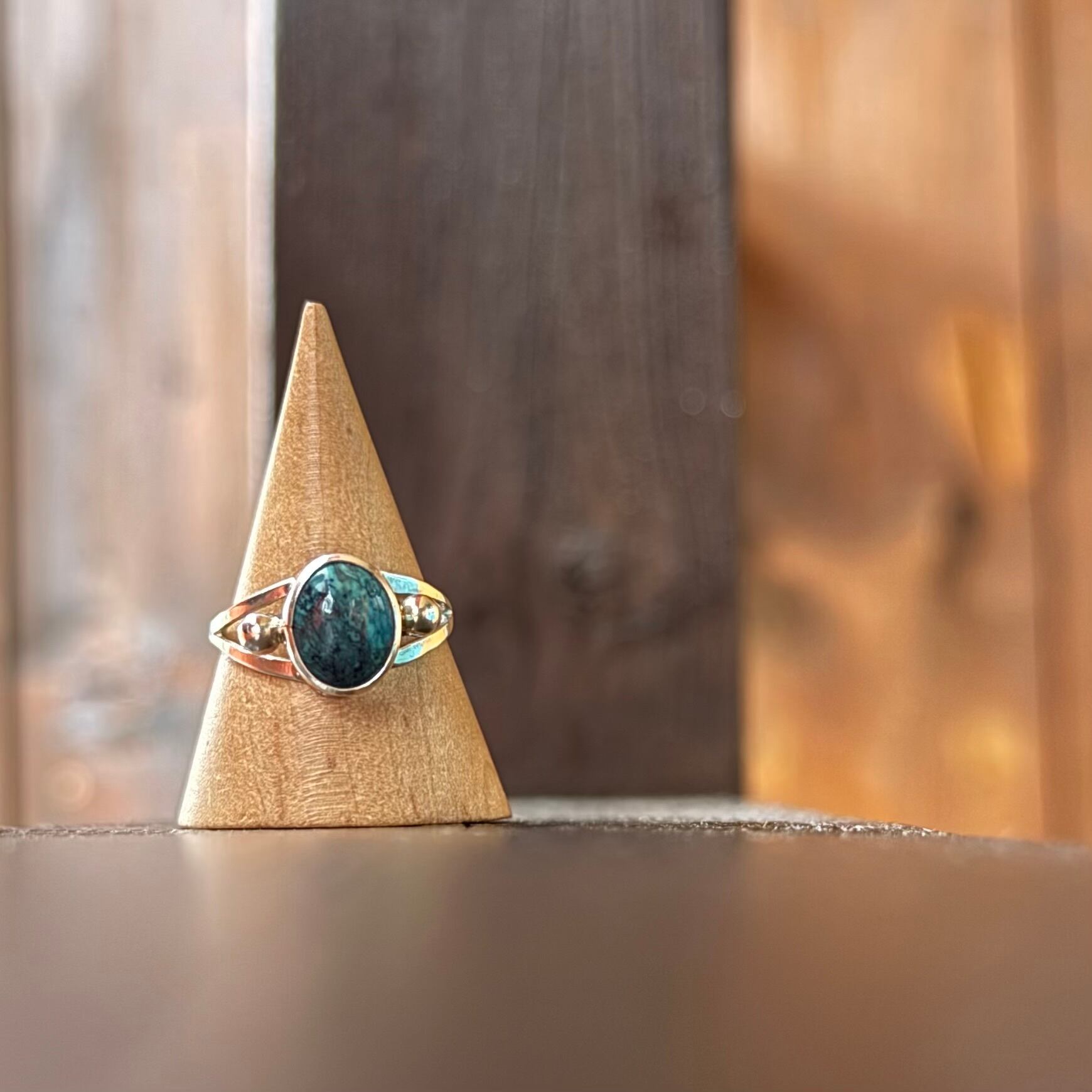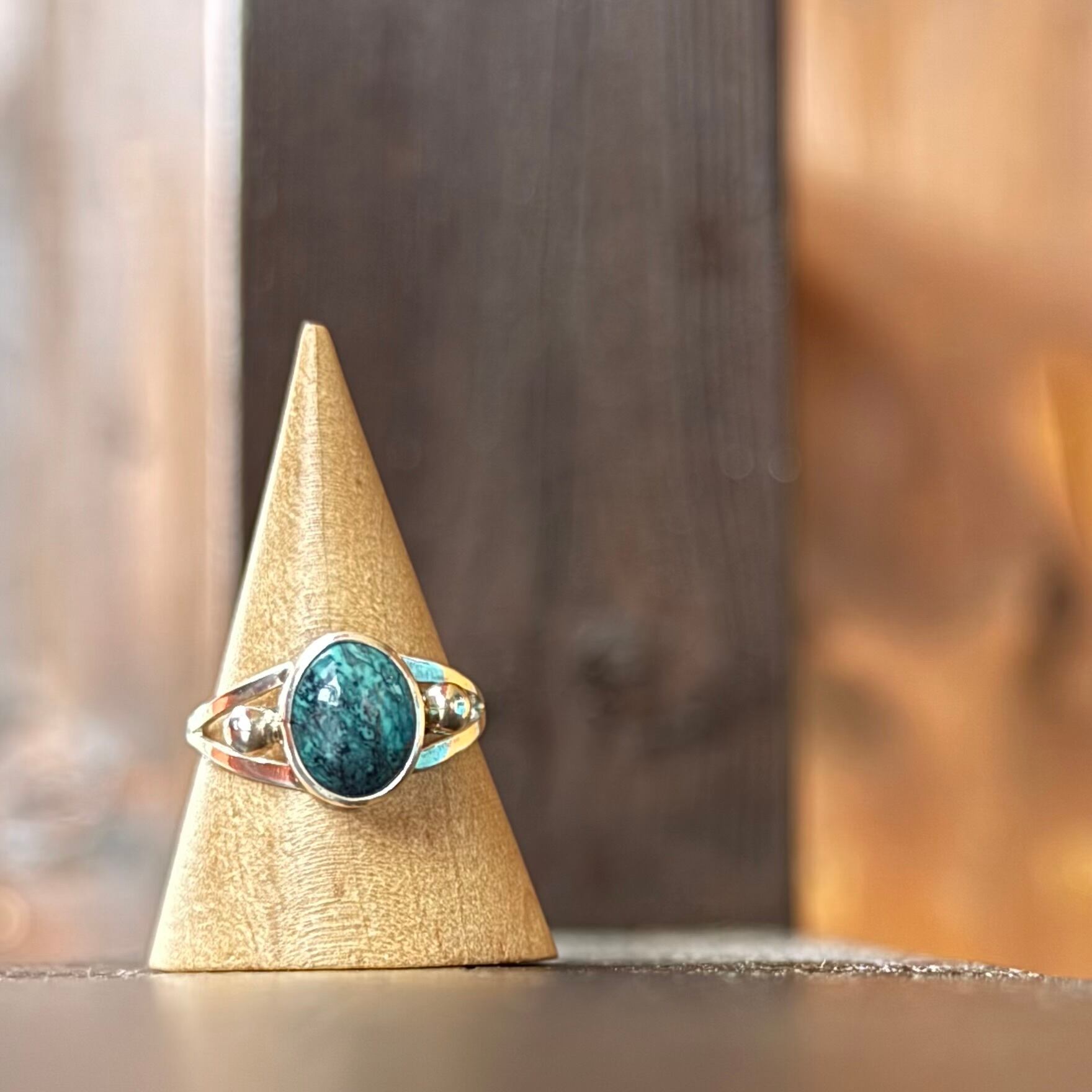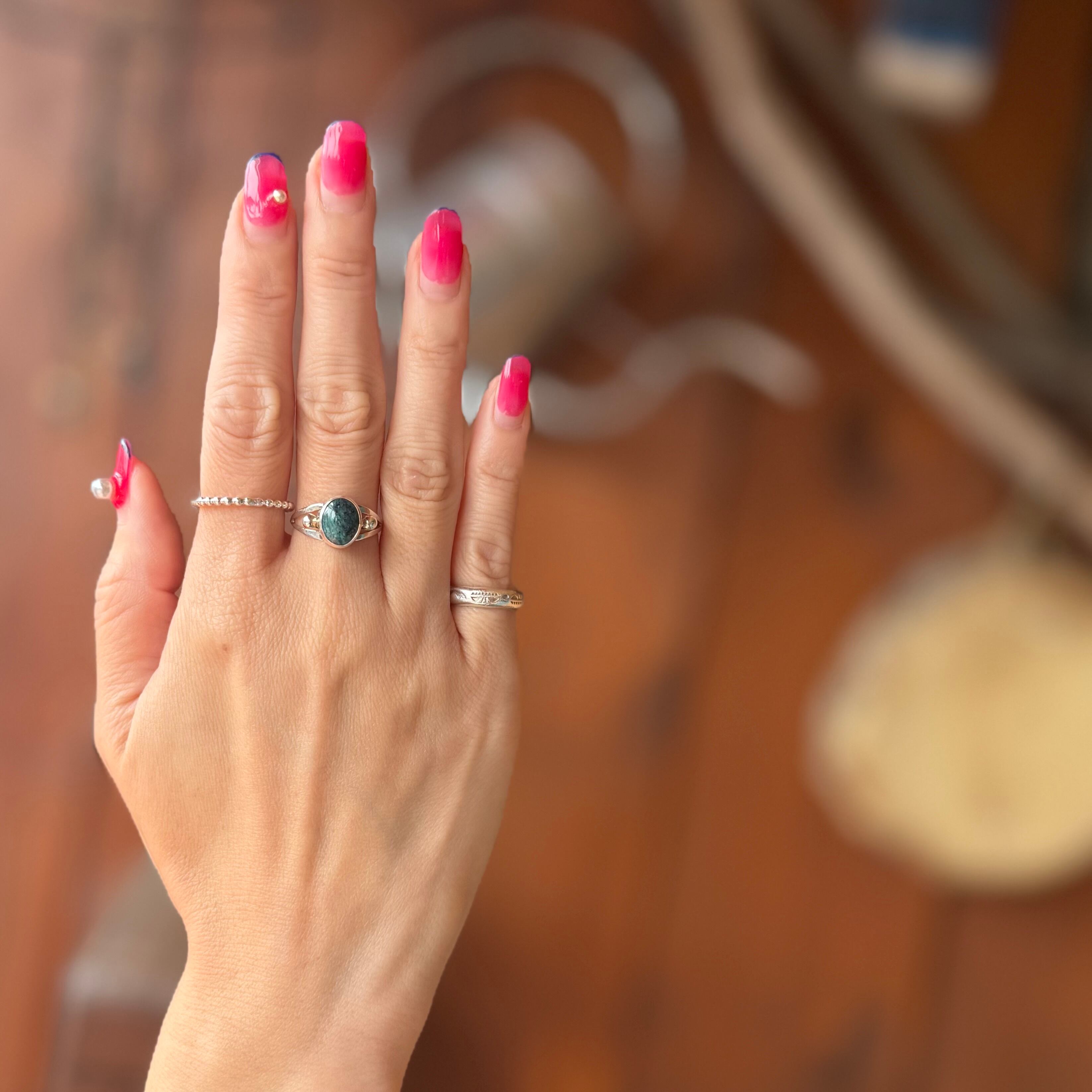 深いグリーンカラーがカッコいいターコイズを使用したシルバーリングです。