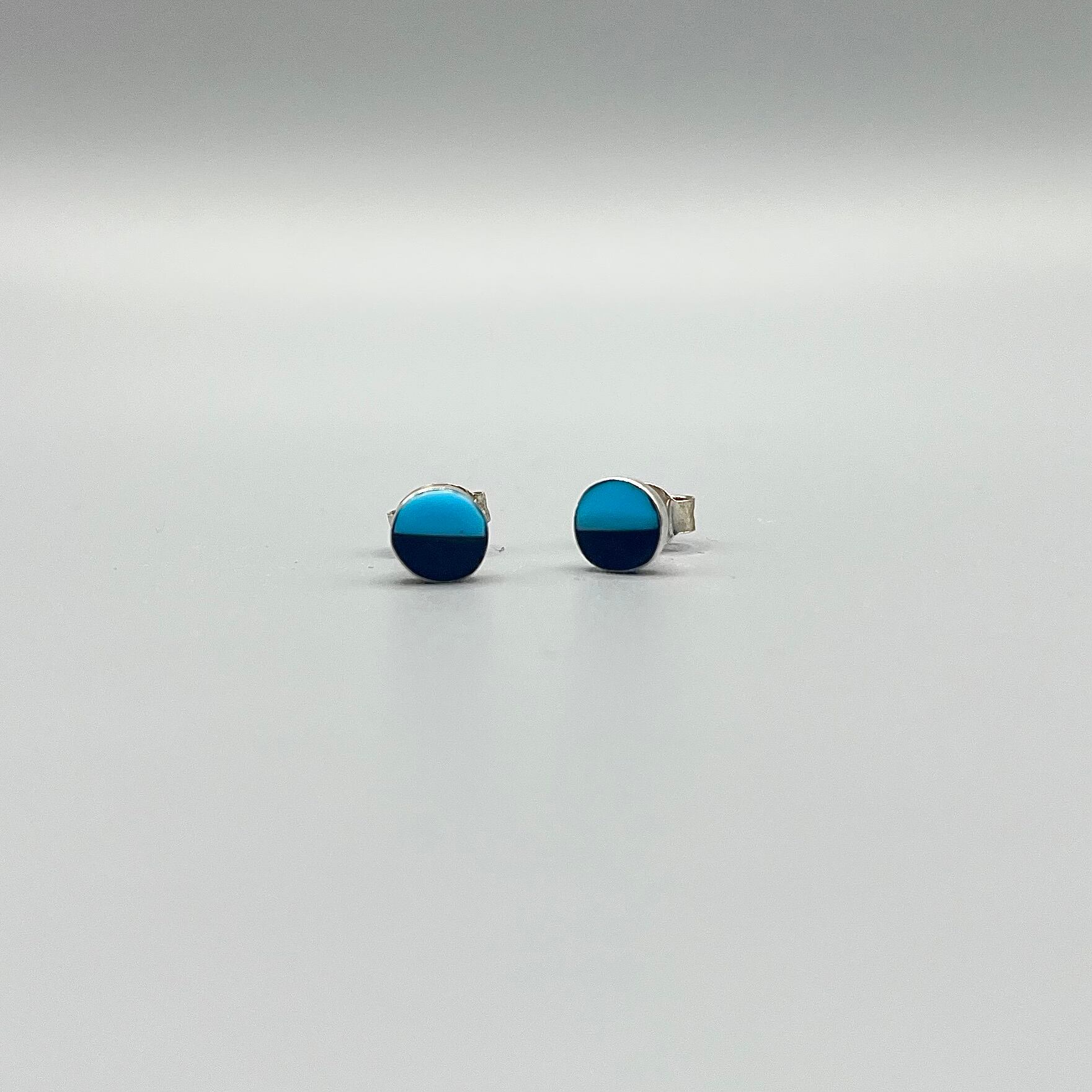 ターコイズとオニキスをカットしインレイワーク技法でラウンドにはめ込んだ拘りの見えるオシャレな仕上がりです。