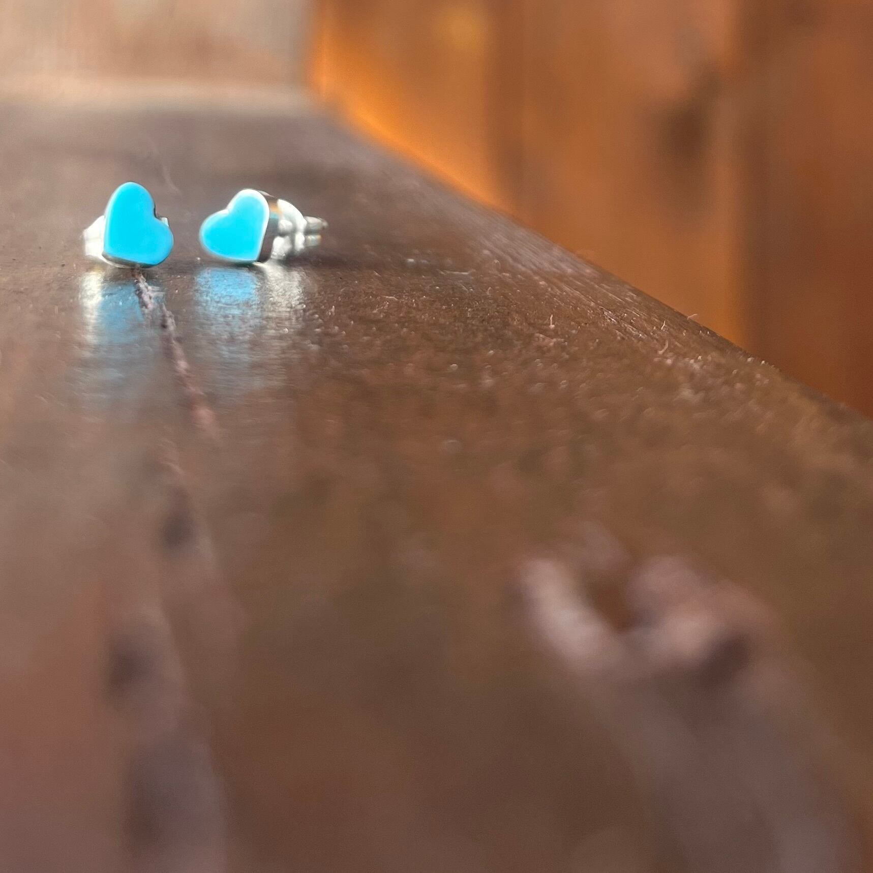 ターコイズをハートのデザインにカットした可愛いピアス。
